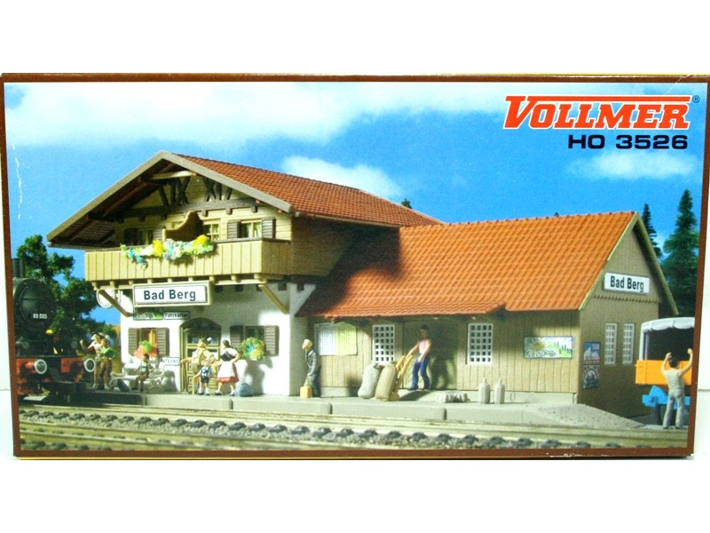 Bausatz Bahnhof Bad Berg, 240 x 120 x 110 mm, ohne Ausschmückung, Figuren und Fahrzeuge. 2 Faller-Beleuchtungen beiliegend