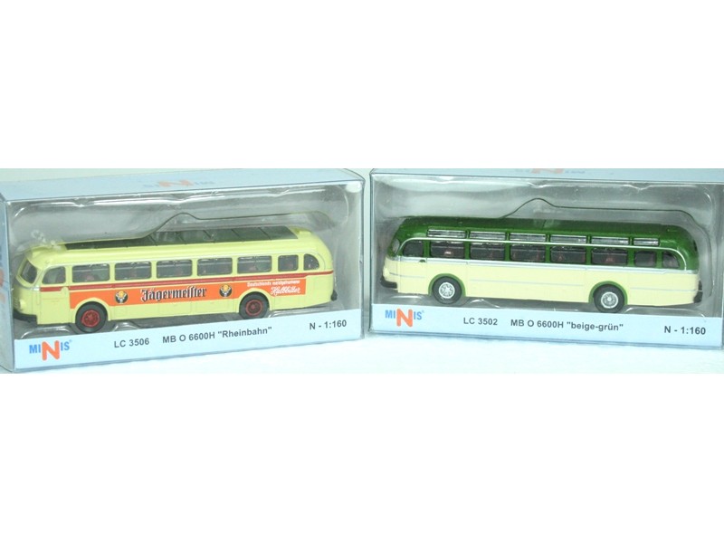 Autoset 19 Spur N 1:160, 2 Busse O6600H in beige-grün Rheinbahn Jägermeister