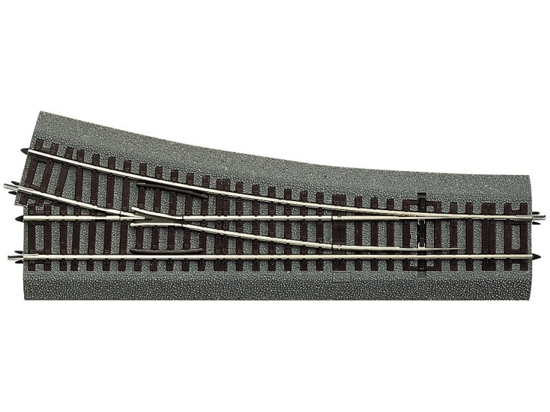 ROCO LINE mit Bettung, Weiche rechts Wr15 mit Handbetrieb, Länge 230 mm (Standardlänge), Abzweigradius 873,5 mm, Abzweigwinkel 15°, Ohne Distanzstücke und ohne voreingestellte Polarisierung.