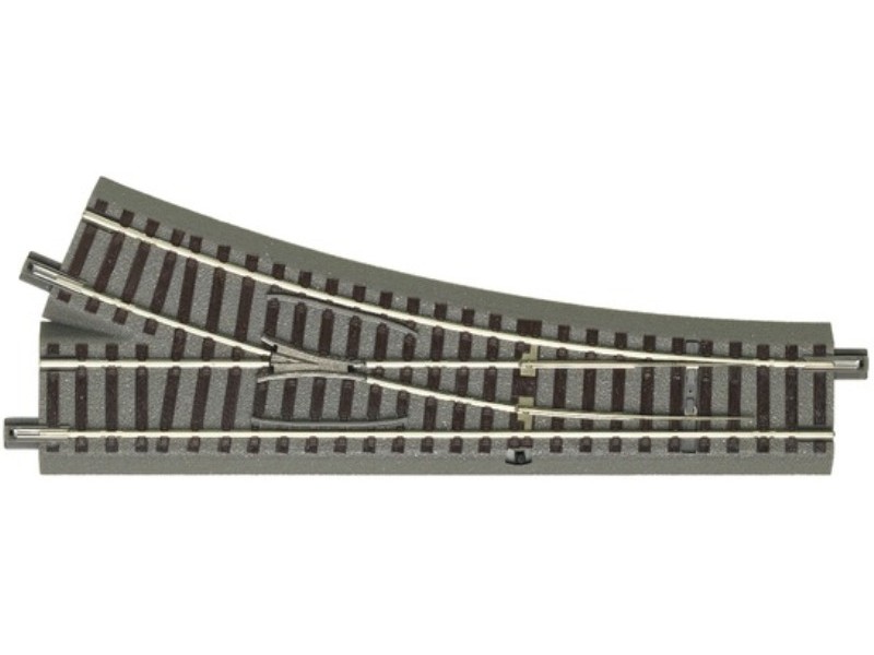 Roco H0 GEOLINE Gleissystem, Weiche rechts, Handbetrieb, Länge 200 mm (= Länge Standardlänge), Abzweigwinkel 22,5°, Abzweigradius 502,7 mm.