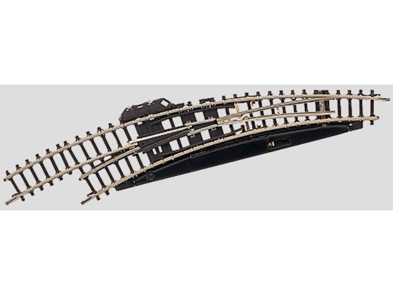 Elktromagnetische Bogenweiche links, Radius 195 mm, 30°, Stammgleis Länge 25 mm, je 1 Stecker rot, gelb, grün liegen bei.