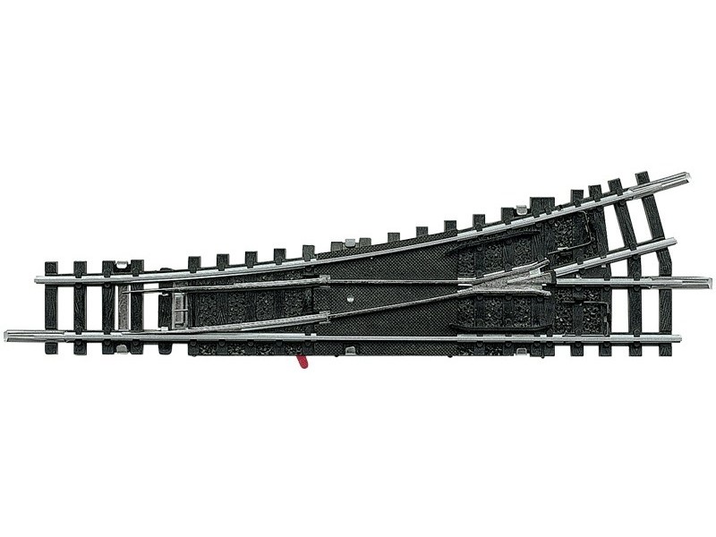 Minitrix, Weiche links - 15° - mit polarisiertem Herzstück. Gerades Gleis = 112,6 mm, Bogenradius R4 (=362,6 mm), 15° + 1x 14903. Stopp-Weichen-Funktion wahlweise.