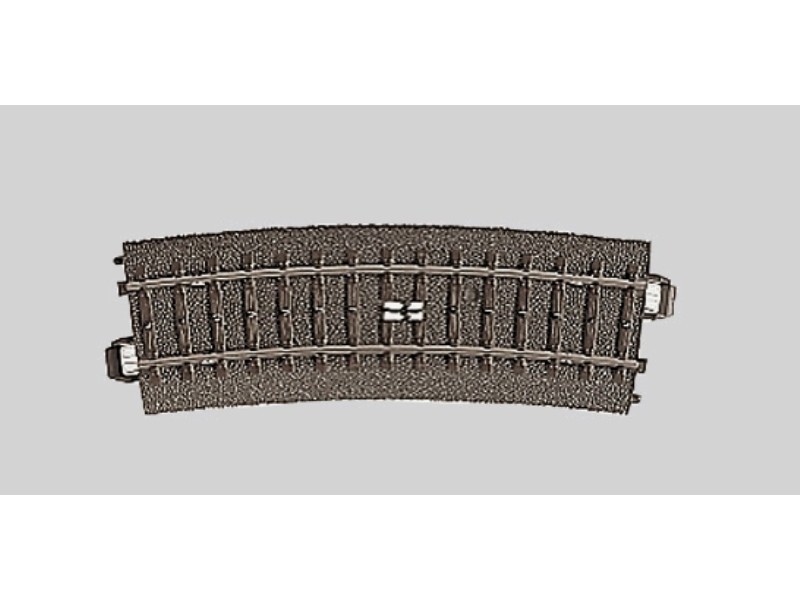 C-Gleis, Schaltgleis gebogen, Radius 2 (R2) = 437,5 mm, 15°. Momentkontakt über Fahrzeugschleifer.