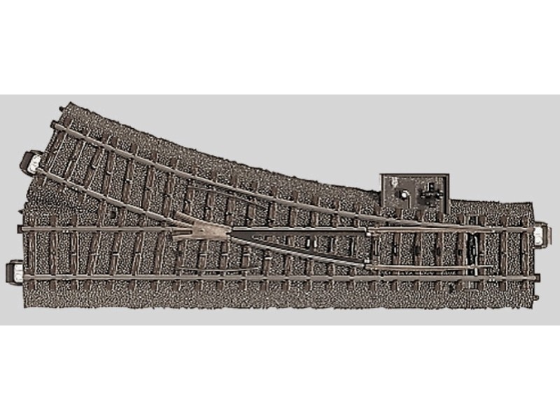 C-Gleis. Weiche rechts 188,3 mm / Radius R2 (R2) = 437,5 mm / 24,3°. Mit Handschalthebel.