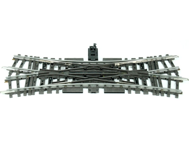 K-Gleis. Doppelkreuzungsweiche mit 1 abnehmbaren Handschalthebel, Kreuzungswinkel 20°30´. Radius 424 mm. Länge gerades Gleis 168,9 mm. Ohne Verpackung.