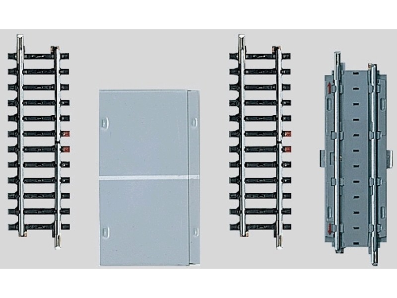 K-Gleis. Zusatzgarnitur zum Bahnübergang 7592. Wird für jedes weitere Parallelgleis benötigt. Kontakt-Gleis-Satz: 3 gerade Gleise je 90 mm. Strassenstück verschiebbar für Gleis-Zwischenräume von 33 bis 68 mm (Gleisabstand 64 bis 99 mm).