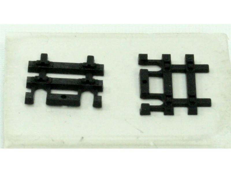 Entkupplungsgleis mit Elektroantrieb, Länge 104,2 mm (Standardlänge). Ohne Schotterbett, Schwellen schwarz.