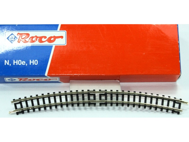 Gebogenes Gleis, R3a, 30°, Radius 295,4 mm. Ohne Schotterbett mit schwarzen Schwellen.