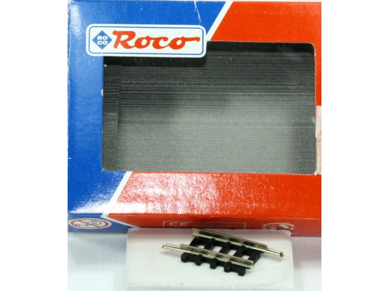 Gebogenes Gleis R2, 6°, Radius 228,2 mm. Ohne Schotterbett, schwarze Schwellen.