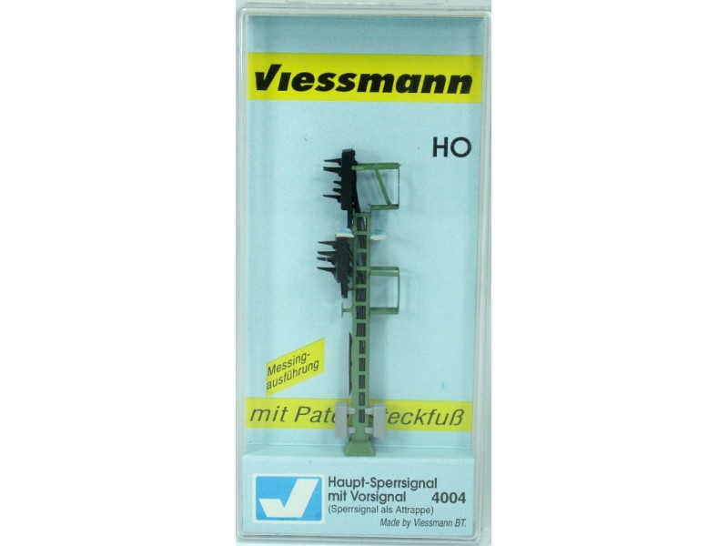 Licht-Hauptsignal mit Vorsignal am Mast, KS-Signal, Sperrsignal als Attrappe, Messingausführung