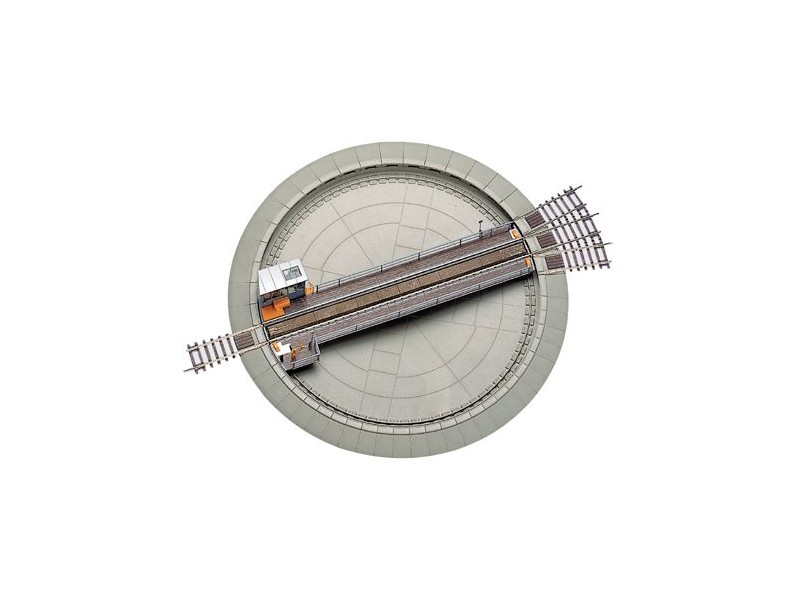 Drehscheibe, elektrisch, geeignet für Zweileiter und Dreileiter (Märklin), 4/3 Gleisabgänge beiliegend, Außendurchmesser 307 mm, Einbaumaß 280 mm, mit Steuergerät für DC und AC