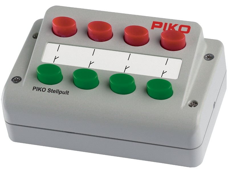 Stellpult zum Schlaten von 4 Weichen, Signalen oder 8 Entkupplungsgleisen. Aufkleber zur individuellen Tastenbeschriftung liegt bei.