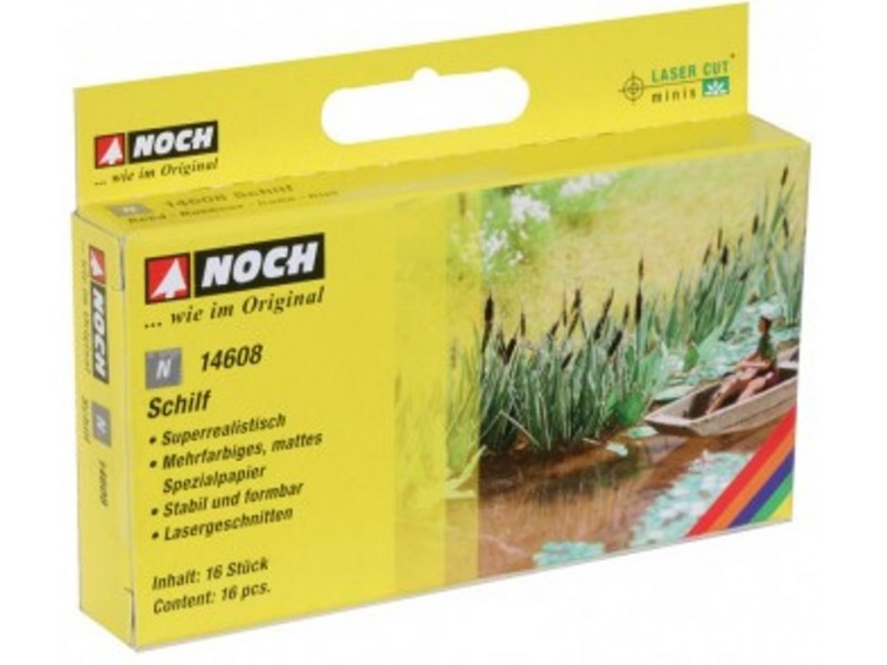 Schilf, lasergeschnitten, stabil und formbar, aus mehrfarbig bedrucktem Spezialpapier. Inhalt der Packung: 16 Pflanzen. Ohne Ausschmückung.