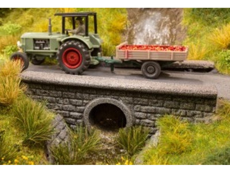Wasserdurchlass "Rohr", aus Noch Struktur-Hartschaum, handbemalt, Inhalt: 2 Rohrauslässe, 8 x 2,9 cm, 2 Mauern, 8 x 2,5 cm, ohne Ausschmückung.