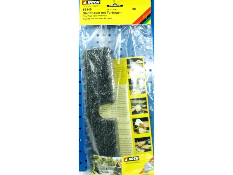 Hartschaum-Serie "Altstadt", Stadtmauer mit Torbogen, 26 x 7 cm, ca. 3 cm stark, aus Noch-Struktur-Hartschaum gefertigt.
