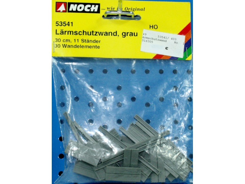 Lärmschutzwand, grau, 11 Ständer, 30 Wandelemente, Länge: 30 cm, Höhe: 36 mm.