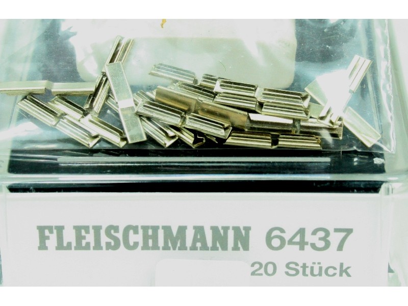 Schienenverbinder zur Verbindung von H0-Gleisen mit 2,5 mm Schienenprofilhöhe mit Gleisen mit 2,1 mm Schienenprofilhöhe, zur Verbindung von FLEISCHMANN Profi-Gleis zum ROCO LINE-Gleis. Die Drehscheibe und das Erg-set 6155 können bei Austausch gegen 6437 an Gleissysteme mit 2,1 mm hohen Schienenprofil angepasst werden. 20 Stck/Btl.
