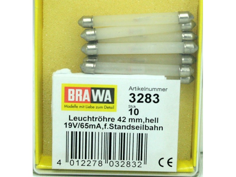 Leuchtröhre (2 Stück), 42 mm, hell, 19V/65mA, auch für BRAWA-Standseilbahn.