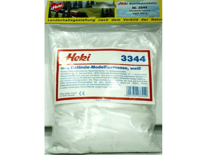Gelände-Modelliermasse, weiß. Pulverisierte mineralische Spachtelmasse mit Zellulosezusatz. Inhalt 500g (Kg: 11,98 €).
