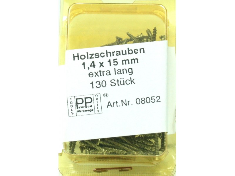 Holzschrauben 1,4 x 15 mm , extra lang, 130 Stück.
